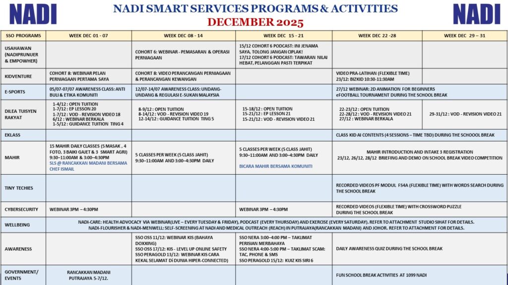 JADUAL PROGRAM & AKTIVITI SSO DISEMBER 2025