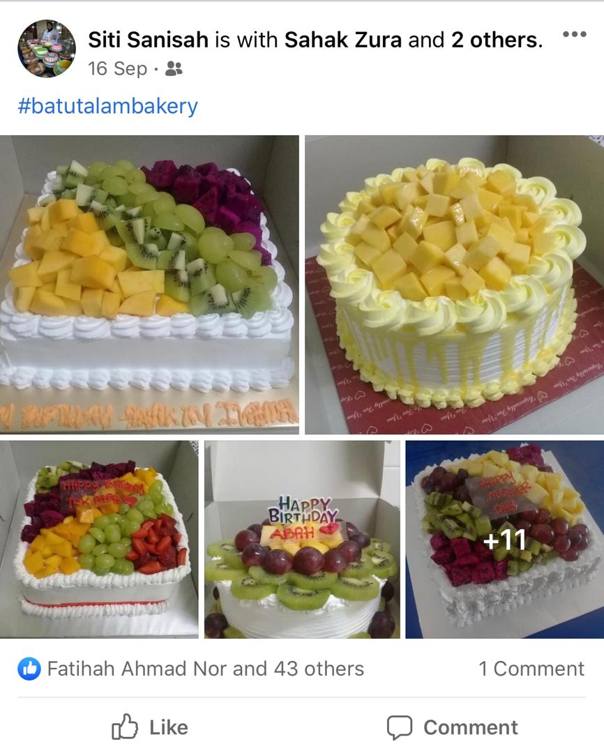 Selain itu, beliau juga menerima tempahan kek, pastri dan biskut raya daripada orang persendirian, sekolah, pejabat dan banyak lagi.